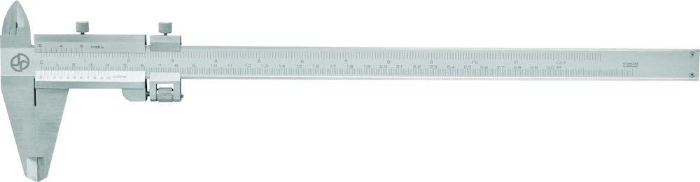 Solidt skydelære med skruelås og finjusteringsskrue til de fleste måleopgaver. Måler fra 0-300 mm med 0,05 mm nonius og 60 mm kæbelængde. Leveres i robust plastkasse.