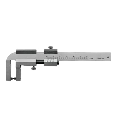 Solidt skydelære med skruelås, specielt designet til bremseskiver. Måler fra 0-60 mm med 0,1 mm i nonius og har en kæbelængde på 30 mm.