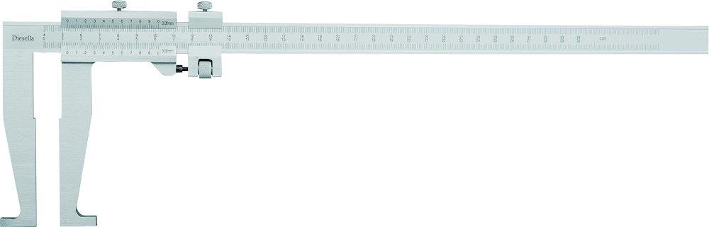 Denne solide skydelære er specielt fremstillet til præcis måling af bremsetromler. Den er designet med en robust konstruktion og et skruelås, der sikrer stabilitet under målingen.
