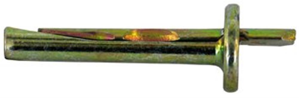 Betonslagplugs til brandsikker montage af stålskinner, beslag og nedstropning i beton. Nem montage: Bor, rens hullet, tryk slagpluggen på plads, og slå stiften i.