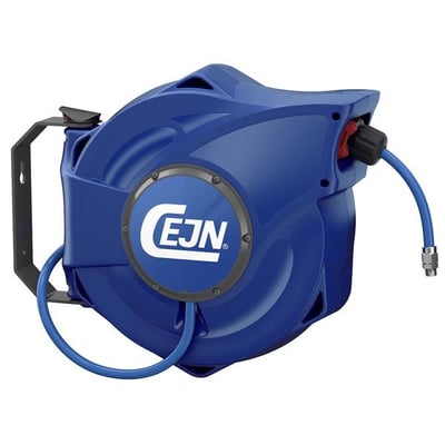 CEJN SafetyReel slangeopruller med 14 meter slange. Patentanmeldt design med fuldt flow for maksimal ydeevne og energibesparelse. Sikker og nem at håndtere.