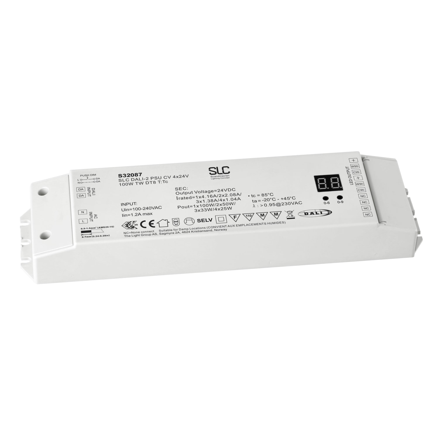 SLC LED Driver DALI-2 DT8 CV 2x2, 24V, 100W CCT / TW, dæmpbar