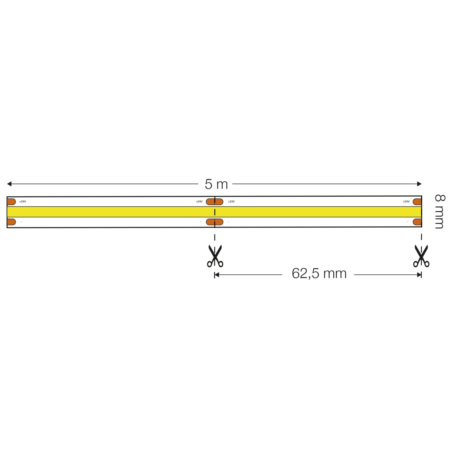 COB LED-strip er specialdesignet til at opnå et jævnt lys. Med 512 LED'er per meter er det nemt at skabe en jævn lyslinje, selv ved brug af en lav aluminiumsprofil.