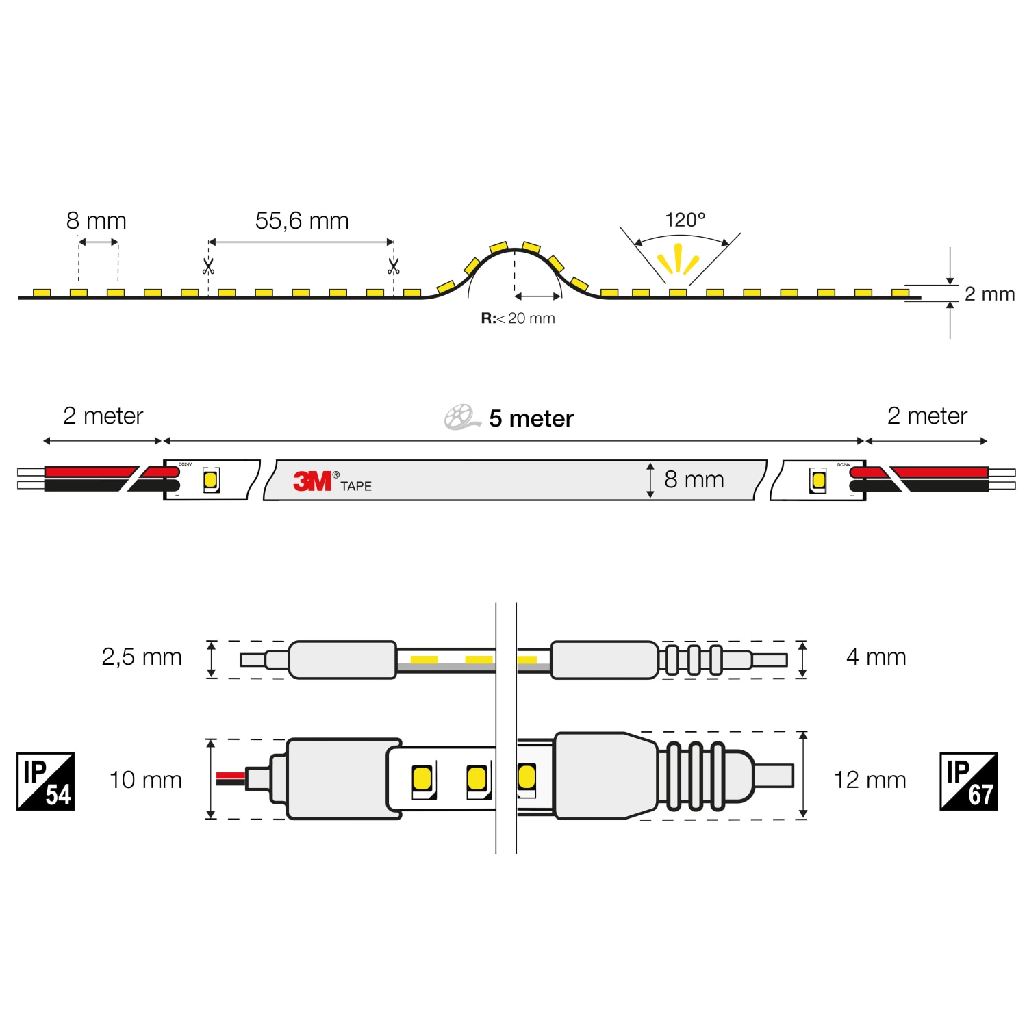 For at sikre en lang levetid bør SLC Standard 2 LED-strippen placeres i en profil for optimal køling. Med sin dobbeltsidede 3M-tape er denne LED-strip alsidig og nem at montere. Du kan hurtigt og nemt installere den på næsten alle overflader, hvilket gør den til det perfekte valg til enhver professionel LED-strip installation.