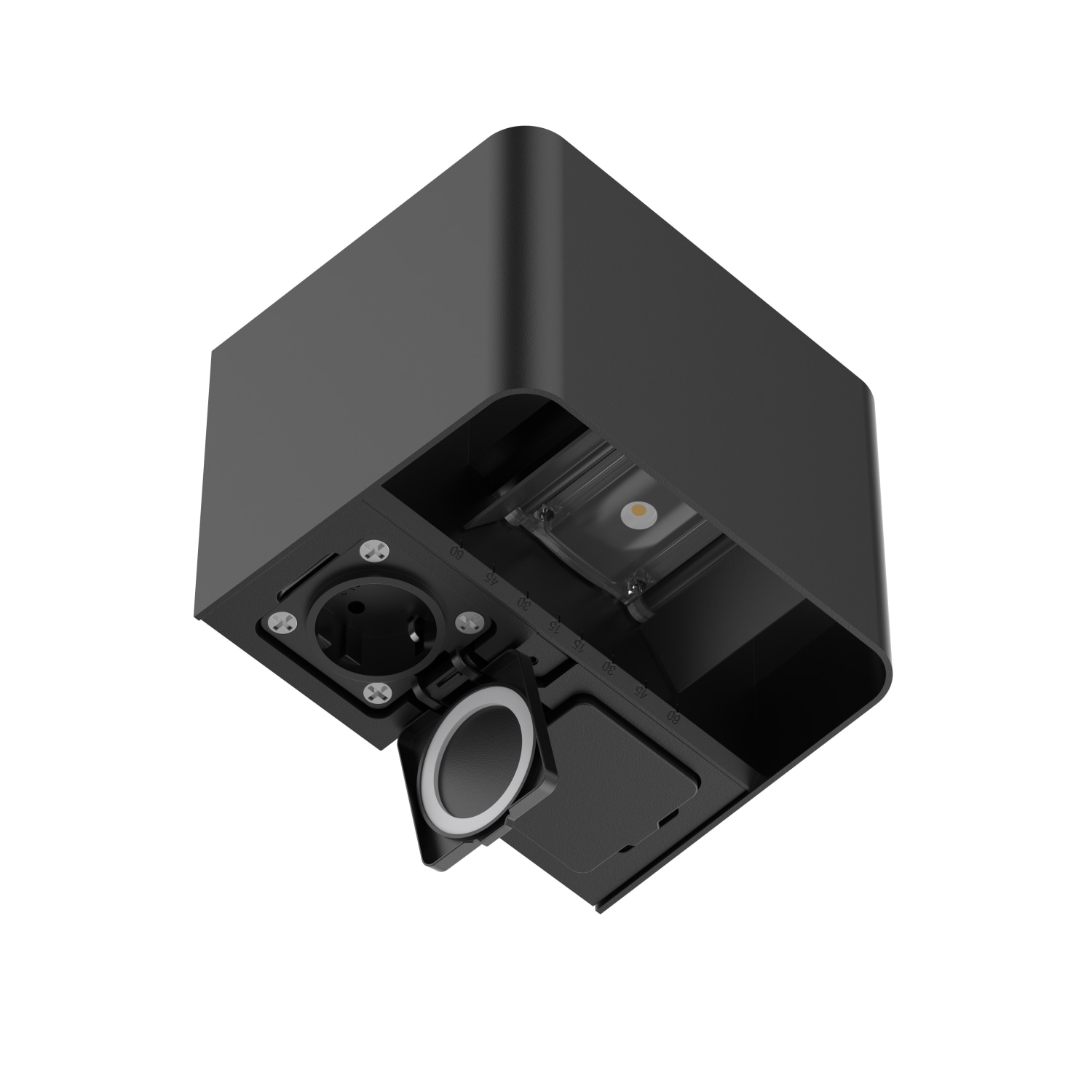 SLC Shadow væglampe med 2 Schuko stik og 2x5W LED lyskilder. Justerbar lysfarve (3CCT) og IP54 klassificeret.