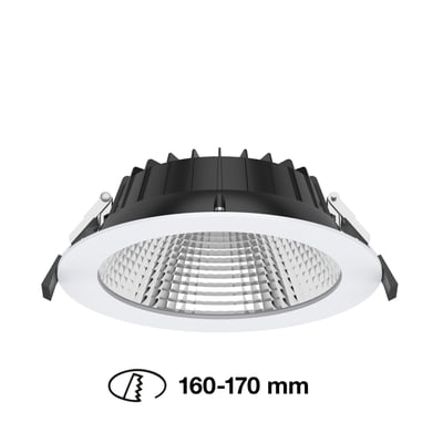 Denne model er ikke egnet til direkte montering i isolering og har en UGR-værdi på 19, hvilket minimerer risikoen for blænding.