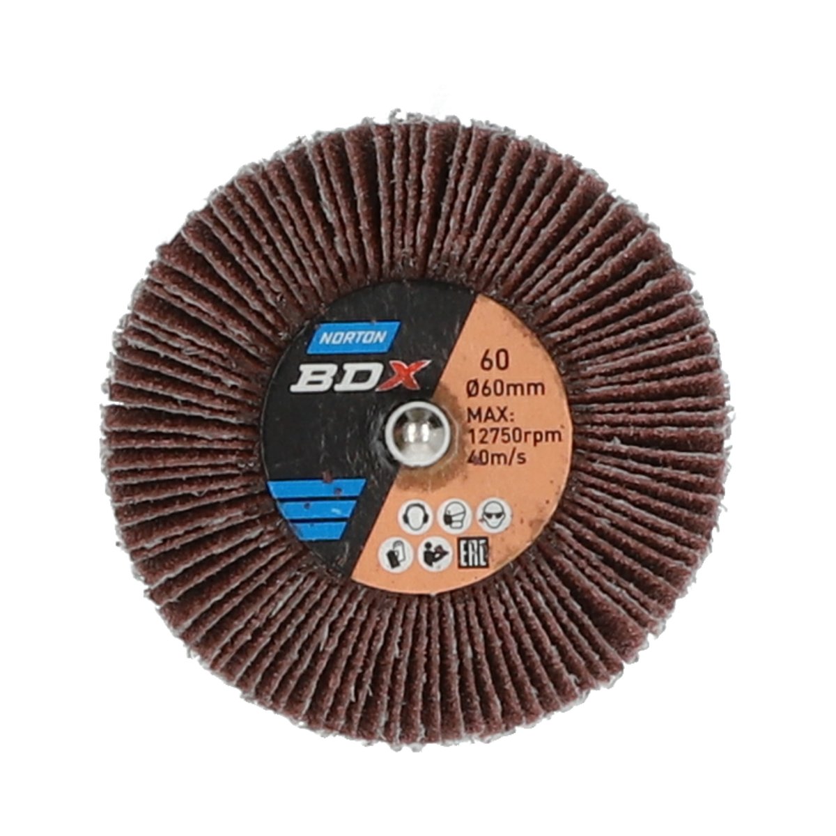 - Konstruktion: Består af et nav med tætsiddende slibelærredslameller, monteret på et 6 mm skaft.