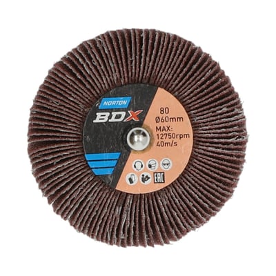 - Robust konstruktion: Slibeviften består af et nav med slibelærredslameller, monteret på et 6 mm skaft, med en ryg med høj modstandsdygtighed.