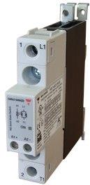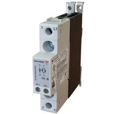 Carlo Gavazzi RGC1A60A15KKE solid state relay. Slimline design with integrated heatsink. Output 600V/20A AC, Input 15-275V AC / 20-190V DC.