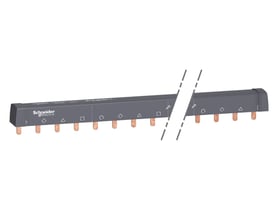 3-polet NEOZED sløjfeskinne af gaffeltype, 1000 mm, til D01/D02 sikringssokler. Effektiv beskyttelse mod overbelastning og kortslutning.