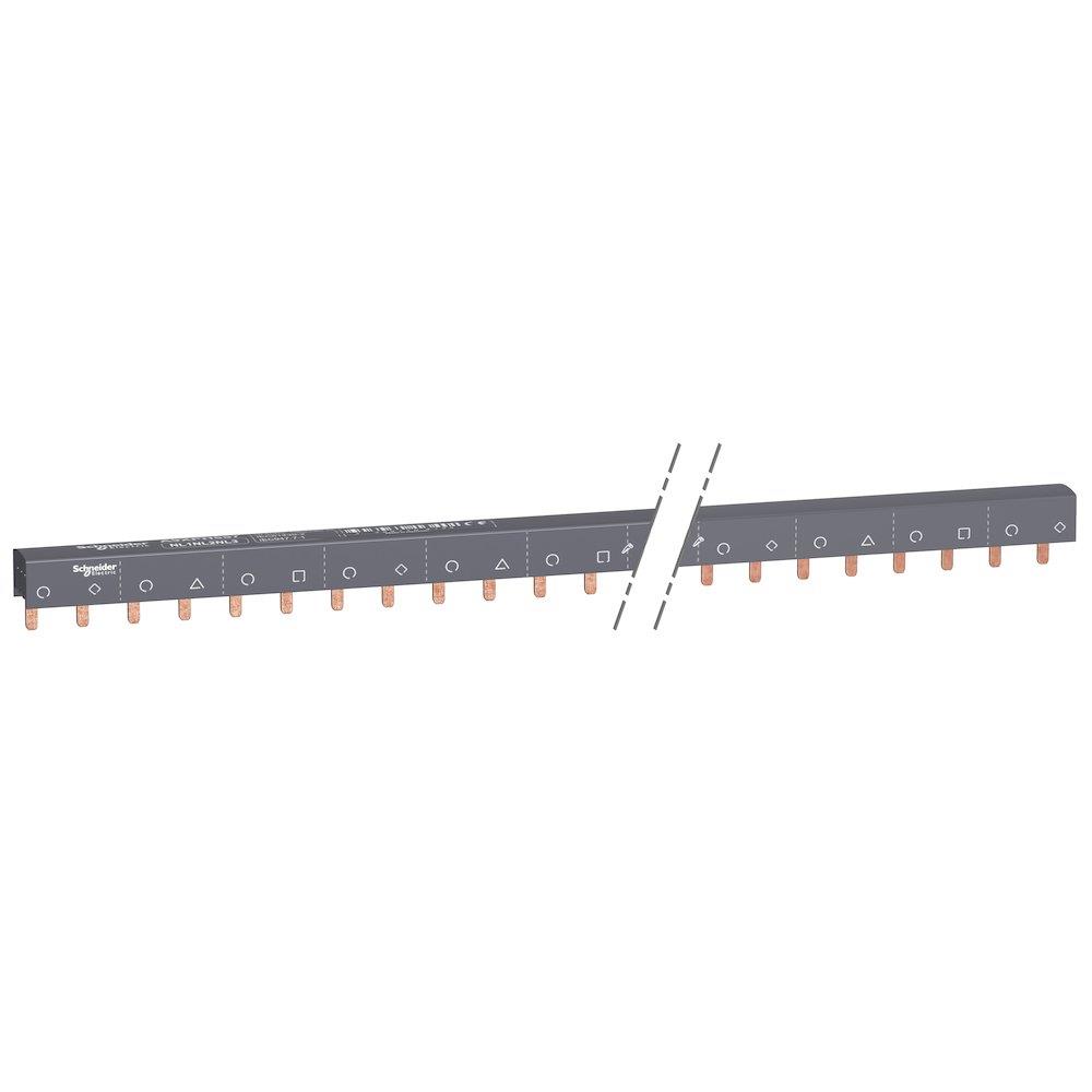 Effektiviser installationen af Schneider Electric Acti 9 produkter med denne 100A sløjfeskinne. Nem at tilskære og udstyret med tydelige faseangivelser. Optimal til DIN-skinne montering.