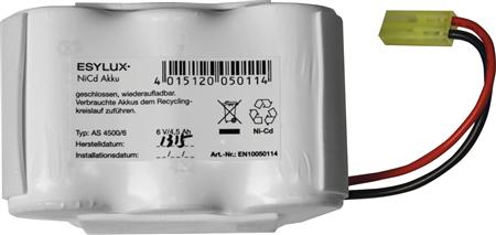 Genopladeligt NiCd-batteri (6 V/4500 mAh) til serien SL P med ompolingssikker stiktilslutning.