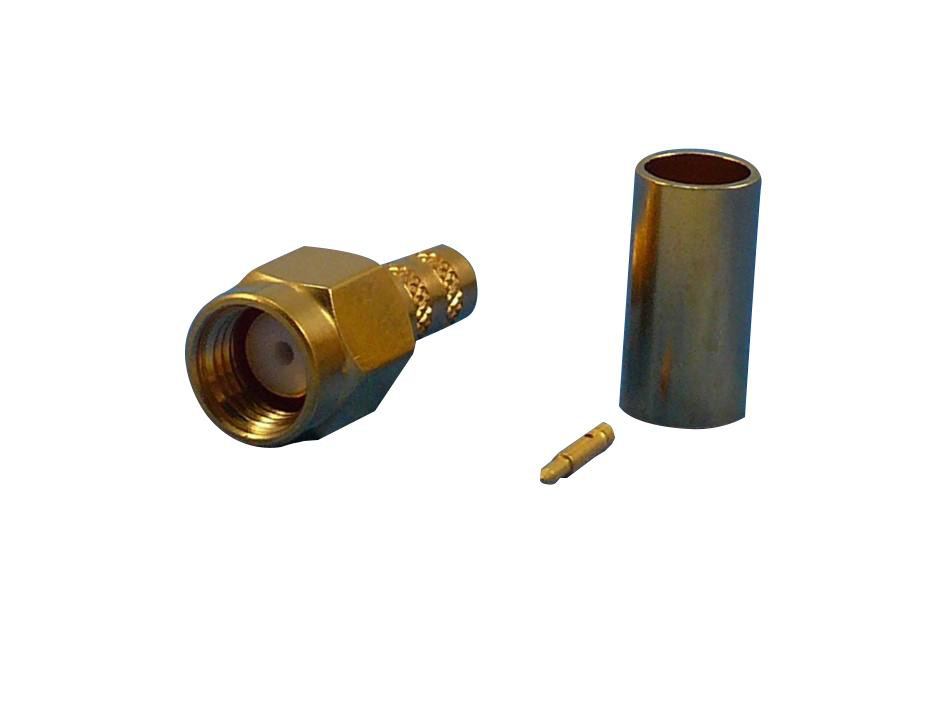 SMA han crimp konnektor til RG58 og LMR195 kabler. Model SMA3100-0058 fra Jyebao.