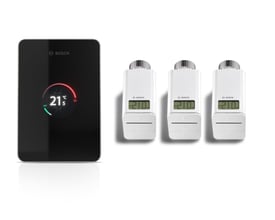 Smart Radiatortermostater fra Bosch har et lyst og elegant design. De er nemme at montere og indstille og har en rækkevidde på op til 100 m i fri luft, hvilket betyder, at du ikke skal tænke på at opsætte signalforstærkere. De medfølgende batterier holder i ca. 2 år, før de skal udskiftes.