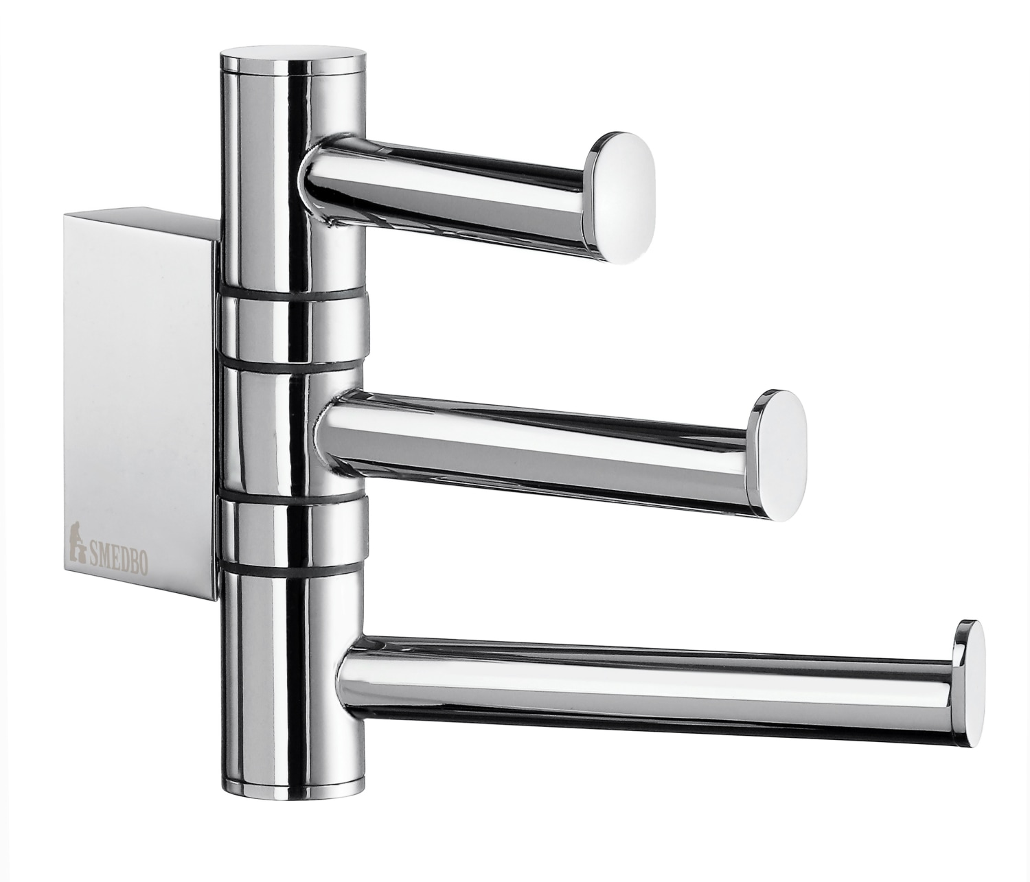 Smedbo air svingbar trippelkrog i poleret krom. Med 3 kroge til ophængning af håndklæder.
