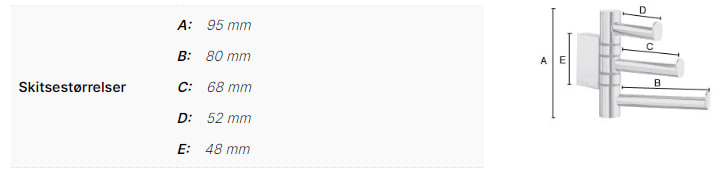 - Dybde: 52 mm, 68 mm, 80 mm (afhængig af armens position)