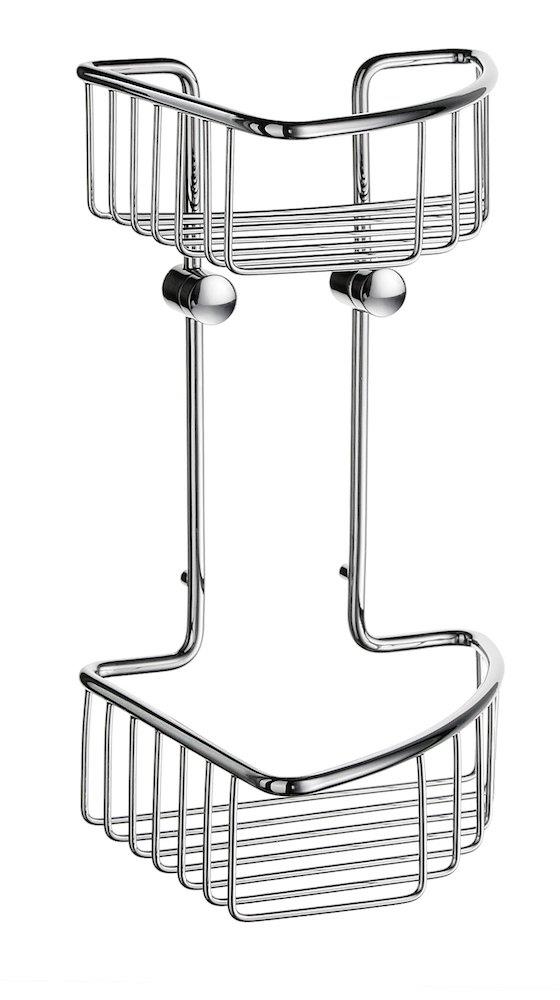 Elegant dobbelt brusehylde i poleret krom. Fremstillet af solid messing med skjult montage. Mål: 165 x 165 mm, højde 295 mm.