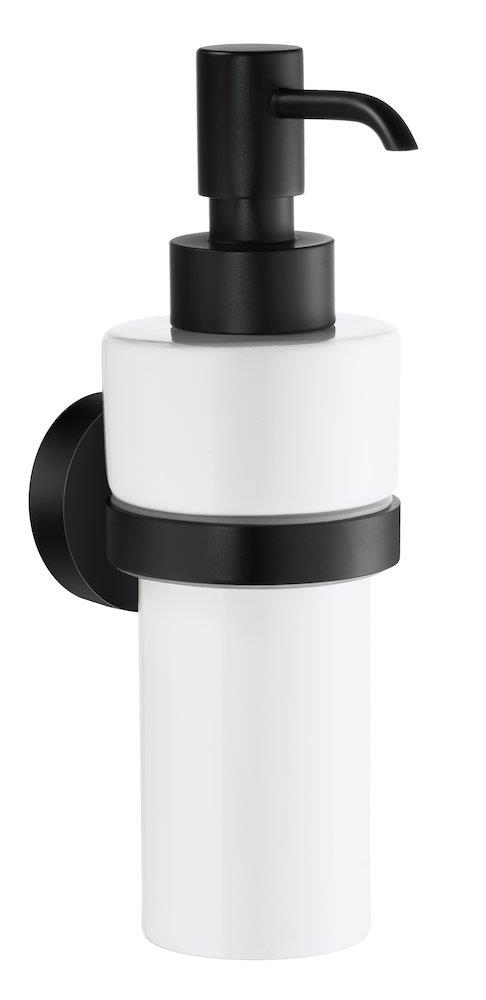 Smedbo Home sæbedispenser til vægmontering. Med matsort messing og elegant porcelænsbeholder. 200ml kapacitet.