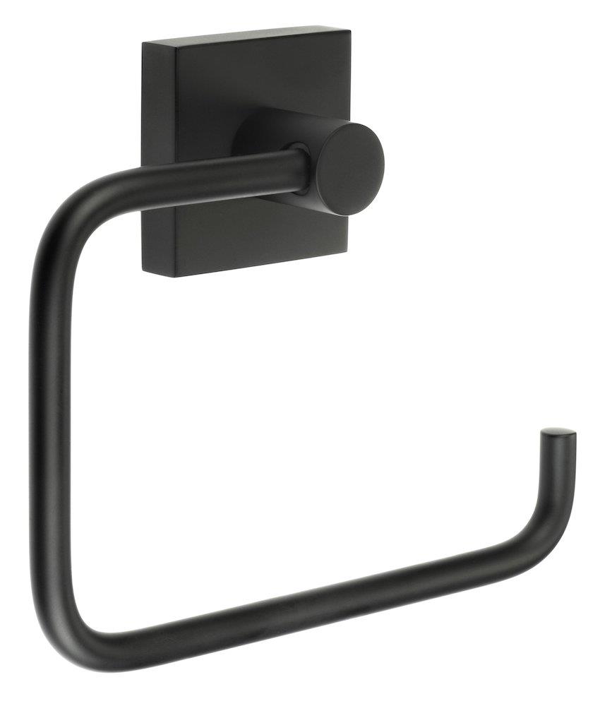 Elegant toiletpapirholder i mat sort messing. Med skjult montage for et rent og stilrent look. Mål: 140 x 95 x 154 mm.