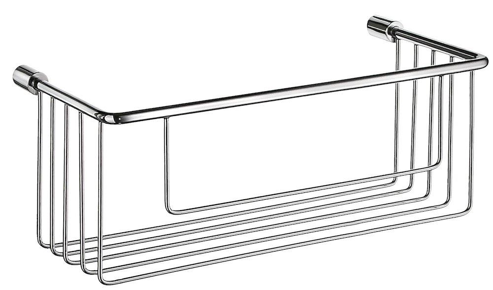 Væghængt brusekurv med én hylde i poleret krom. Fremstillet af massiv messing, som ikke ruster. Skjult montage for et stilrent udtryk. Mål: 267 x 117 mm. Højde: 105 mm.