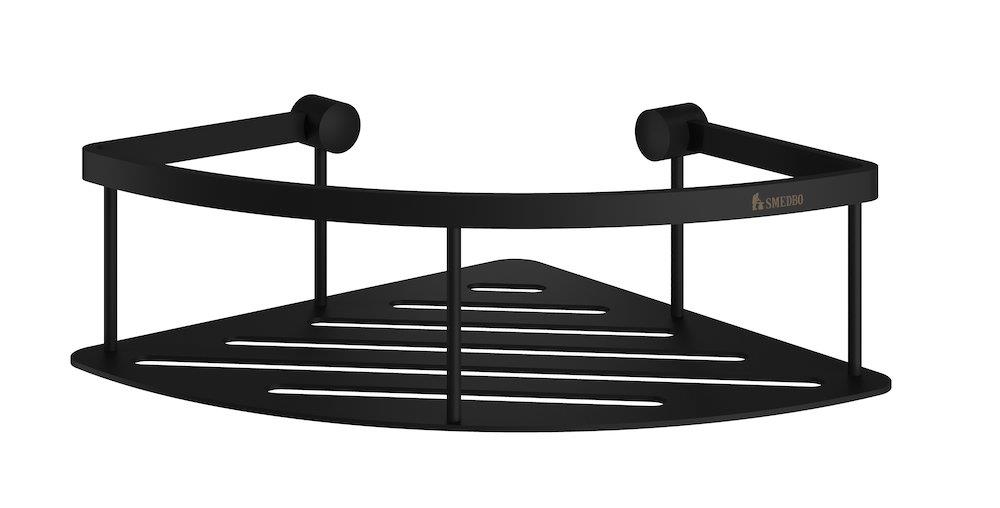 Praktisk hjørne brusekurv i mat sort. Fremstillet af massiv messing, der sikrer lang holdbarhed og rustfrihed. Skjult montage.