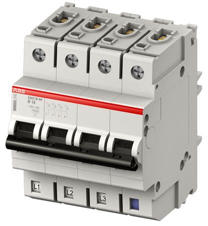 3-polet afbryder + nul, B-karakteristik, 63A, 10kA fra ABB.