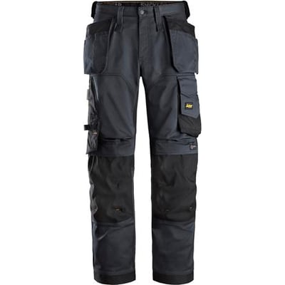 Disse AllroundWork stretch bukser har et loose fit design og hylsterlommer. De er designet til at være både fleksible og behagelige at have på. Bukserne kombinerer 2-vejs stretch med paneler af 4-vejs stretch på bagsiden for at give optimal bevægelsesfrihed under arbejdet.
