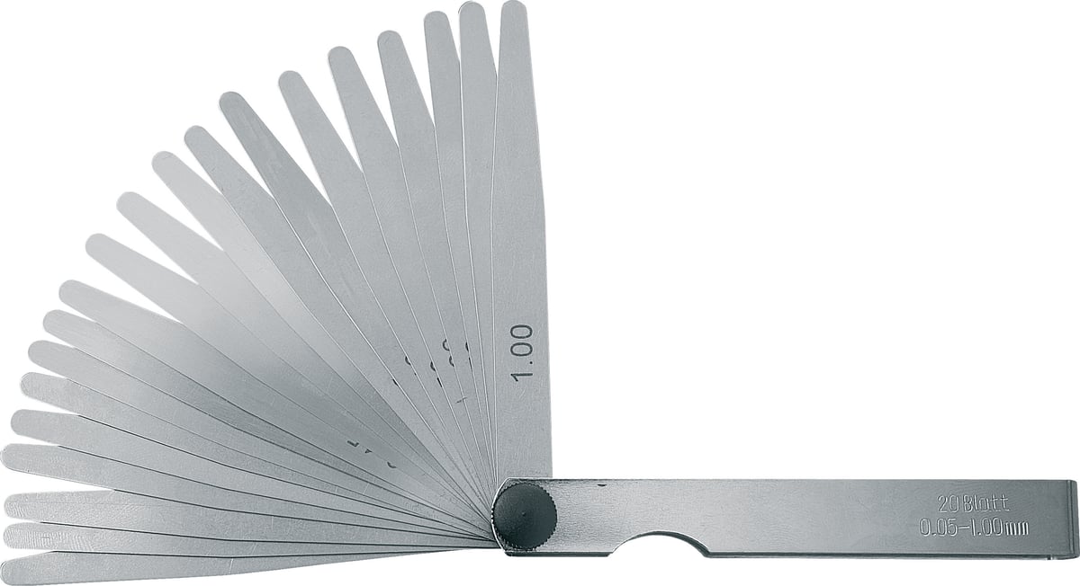Konisk formede stålsøgeblade med tydeligt markerede størrelser. Kompakt værktøj til måling af mellemrum mellem mekaniske dele og materialer.