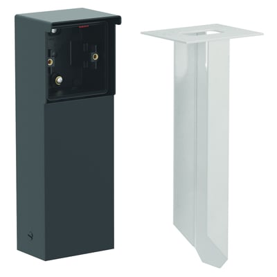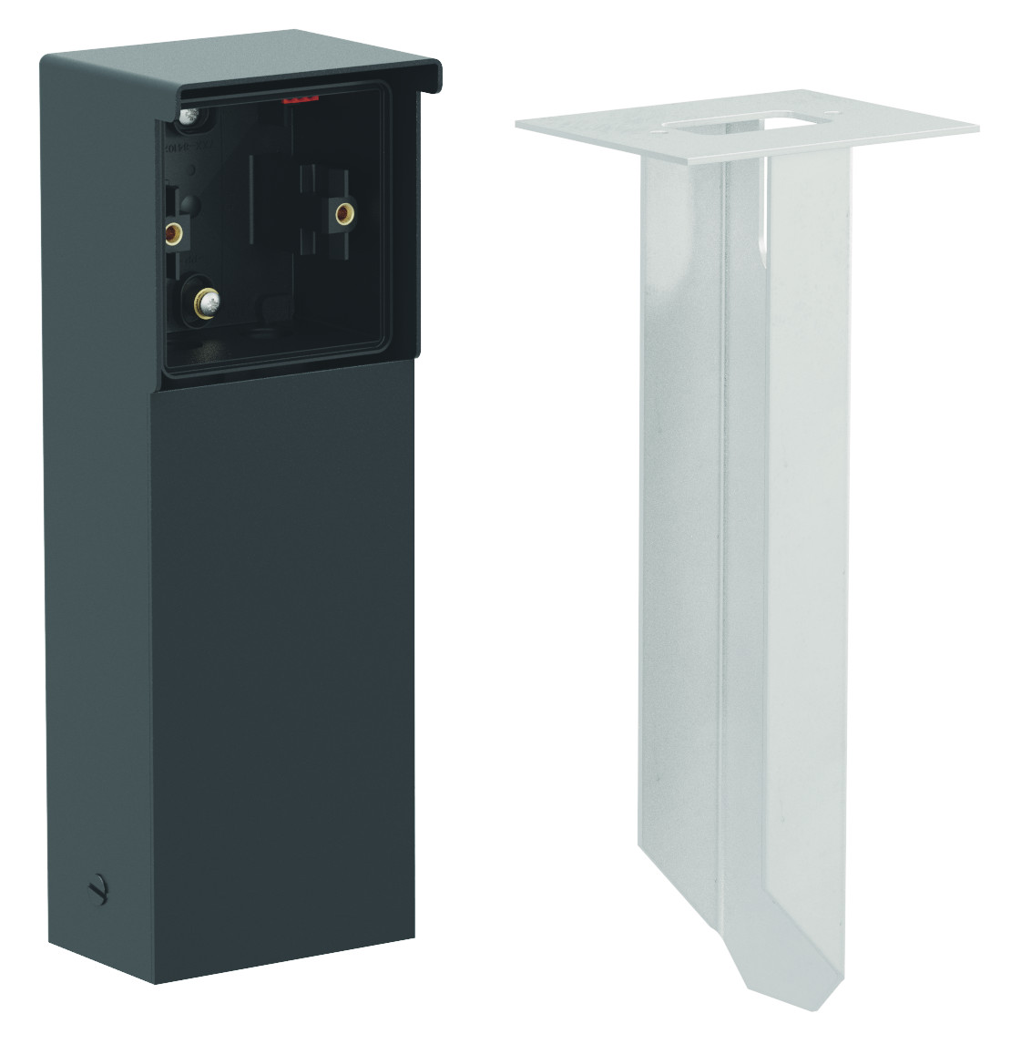 Hydro stænktæt stikkontaktsøjle til én valgfri funktion fra Hydro programmet, for eksempel en stikkontakt eller en cykeloplader. Med en Hydro stænktæt adaptorramme kan stikkontaktsøjlen anvendes sammen med indsatser, der normalt anvendes indendørs, som for eksempel en USB oplader.