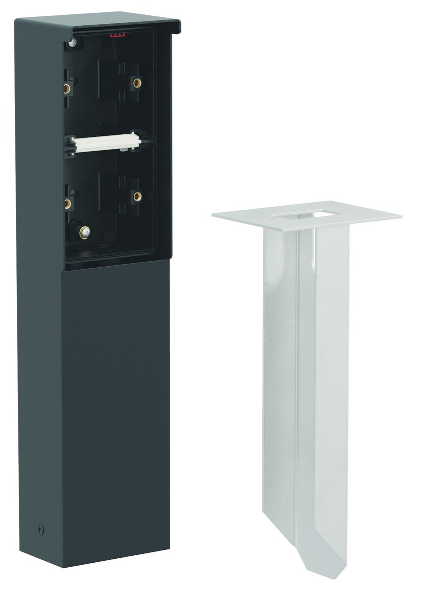 Stænktæt stikkontaktsøjle til udendørs brug. Kan anvendes med stikkontakter, USB-opladere eller cykelopladere fra Hydro-programmet. Nem at installere med det medfølgende spyd.