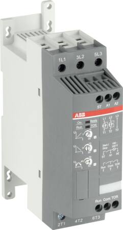 ABB softstarter, 25A, 400V AC, 11 kW. Features 24VAC/DC control voltage and built-in bypass contactor.