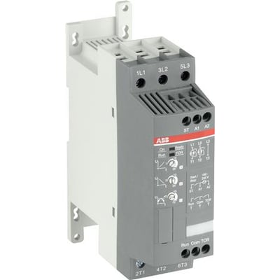 ABB softstarter til 400V AC med 30A, 15 kW. Har 24VAC/DC styrespænding og indbygget by-pass kontaktor.
