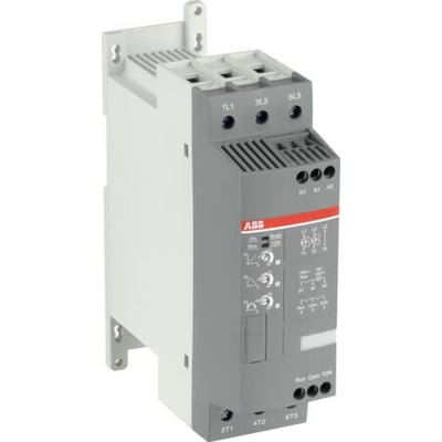 ABB softstarter til 400V AC med 105A og 55kW. Har 24VAC/DC styrespænding og indbygget by-pass kontaktor.