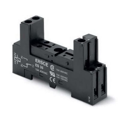 Relæstik til printkortrelæer PES-35, DIN-skinnemontering, 1 PDT, hæveskruetilslutning.