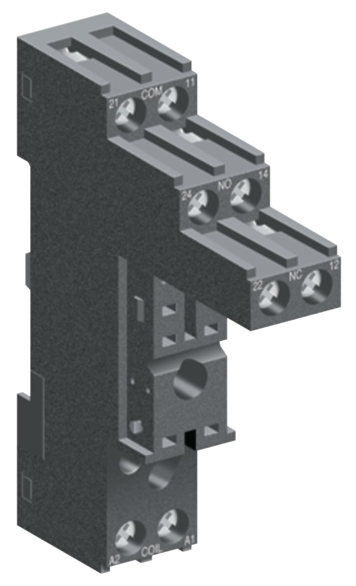 Sokkel til RSB2A080 og RSB1A160 relæer. Kontaktmateriale: AgNi. UN: 250/400 V DC/AC. IP 40.