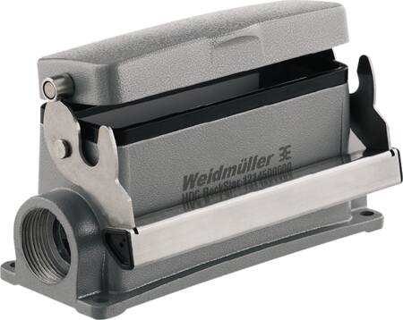 Dette sokkelhus fra Weidmüller er designet til industrielle stikforbindelser. Det er i størrelse 8 og beregnet til 2xPG21 kabelforskruninger. Huset er udstyret med en bøjle og et låg for sikker og pålidelig forbindelse.