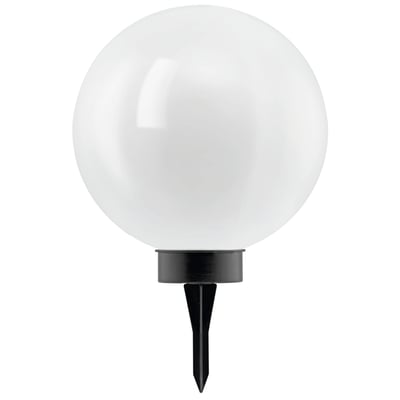 EGLO solcellekugle på spyd i sort plast med hvid skærm. LED 1x 0,2W. Diameter: 30 cm, Højde: 61 cm.