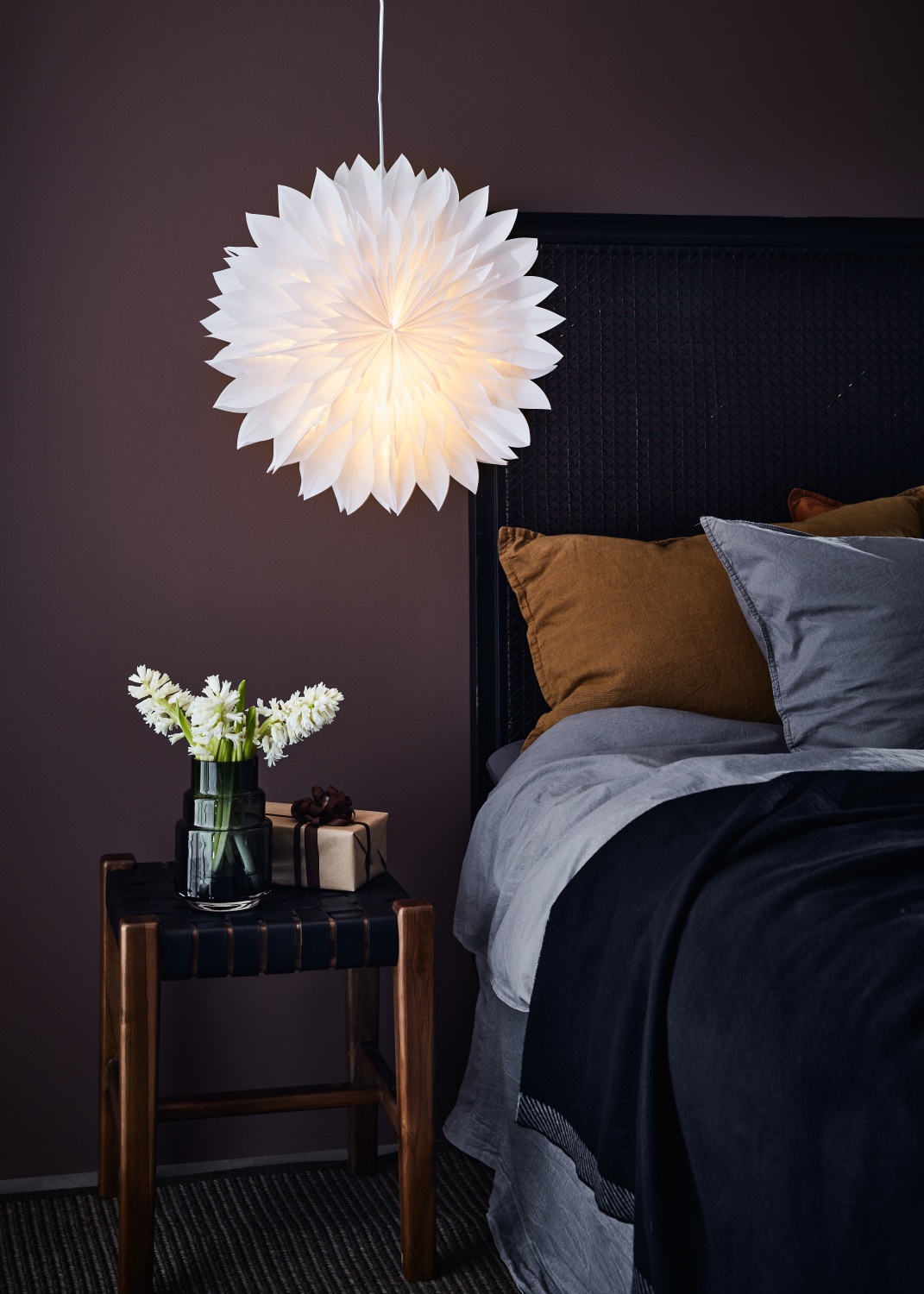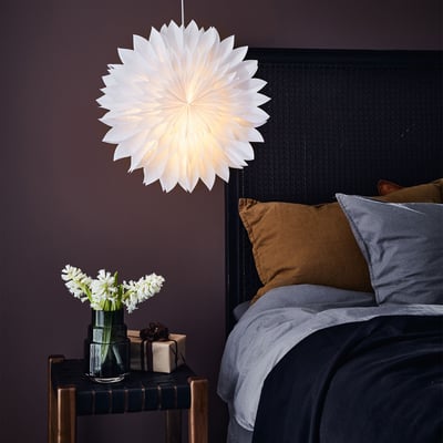 Med en diameter på 45 cm og en højde på 48 cm, skaber denne stjerne en hyggelig atmosfære i ethvert rum. Den hvide ledning er 3,5 meter lang og har en praktisk kontakt.