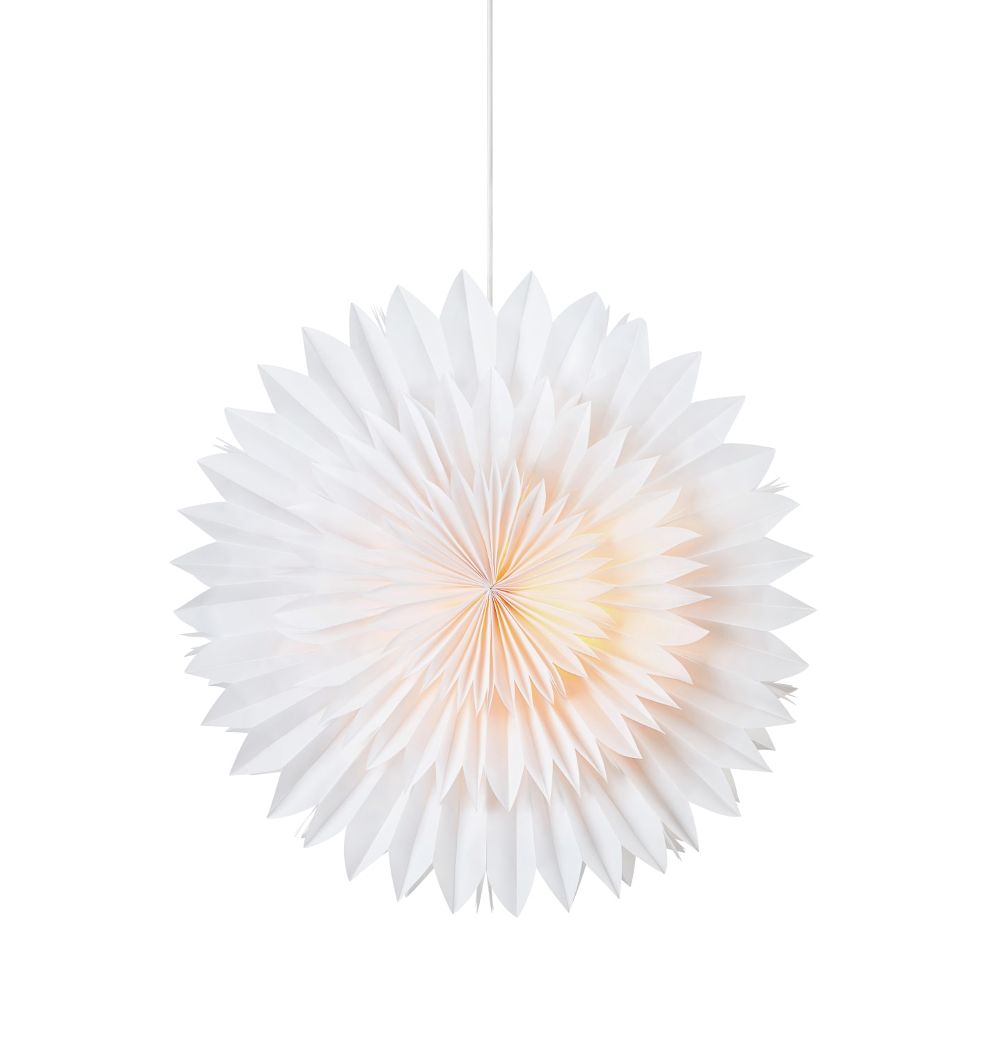 Solina papir stjerne pendel med 3,5 meter hvid ledning med stik. Anvender 1xE14, max 6W LED.