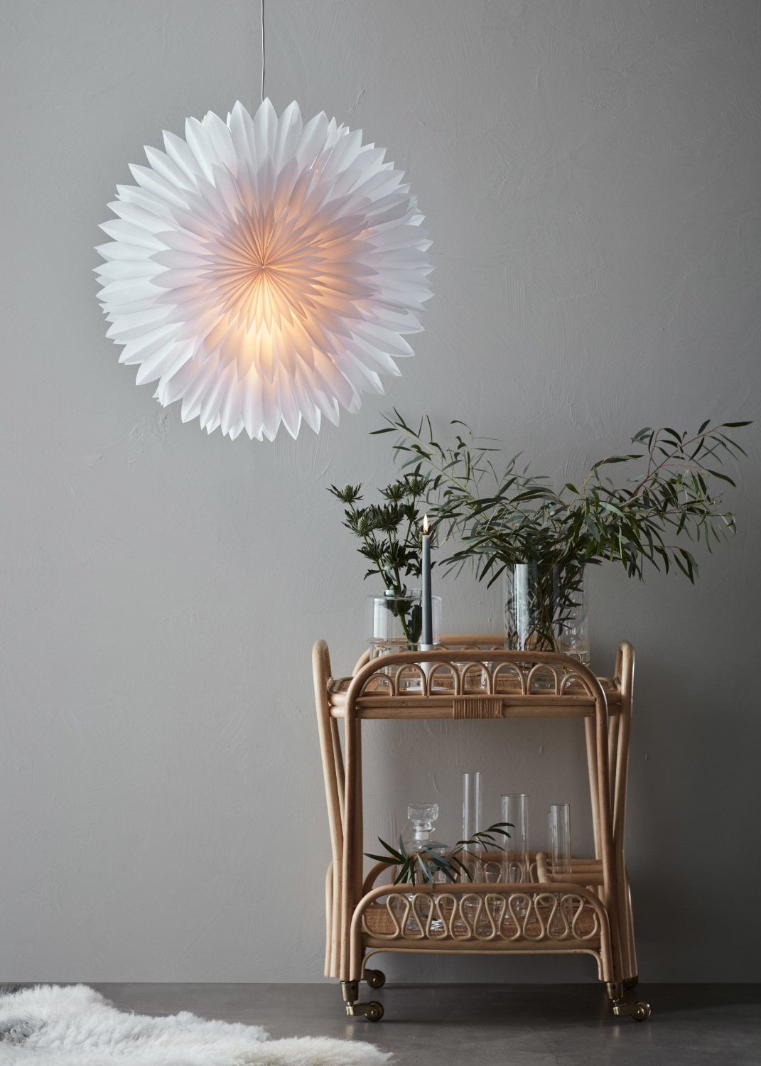 Solina stjerne pendel er en dekorativ papirstjerne, der skaber en hyggelig atmosfære i ethvert rum. Med sit enkle og elegante design passer den perfekt ind i den moderne indretning, og den hvide farve giver et rent og stilfuldt udtryk.