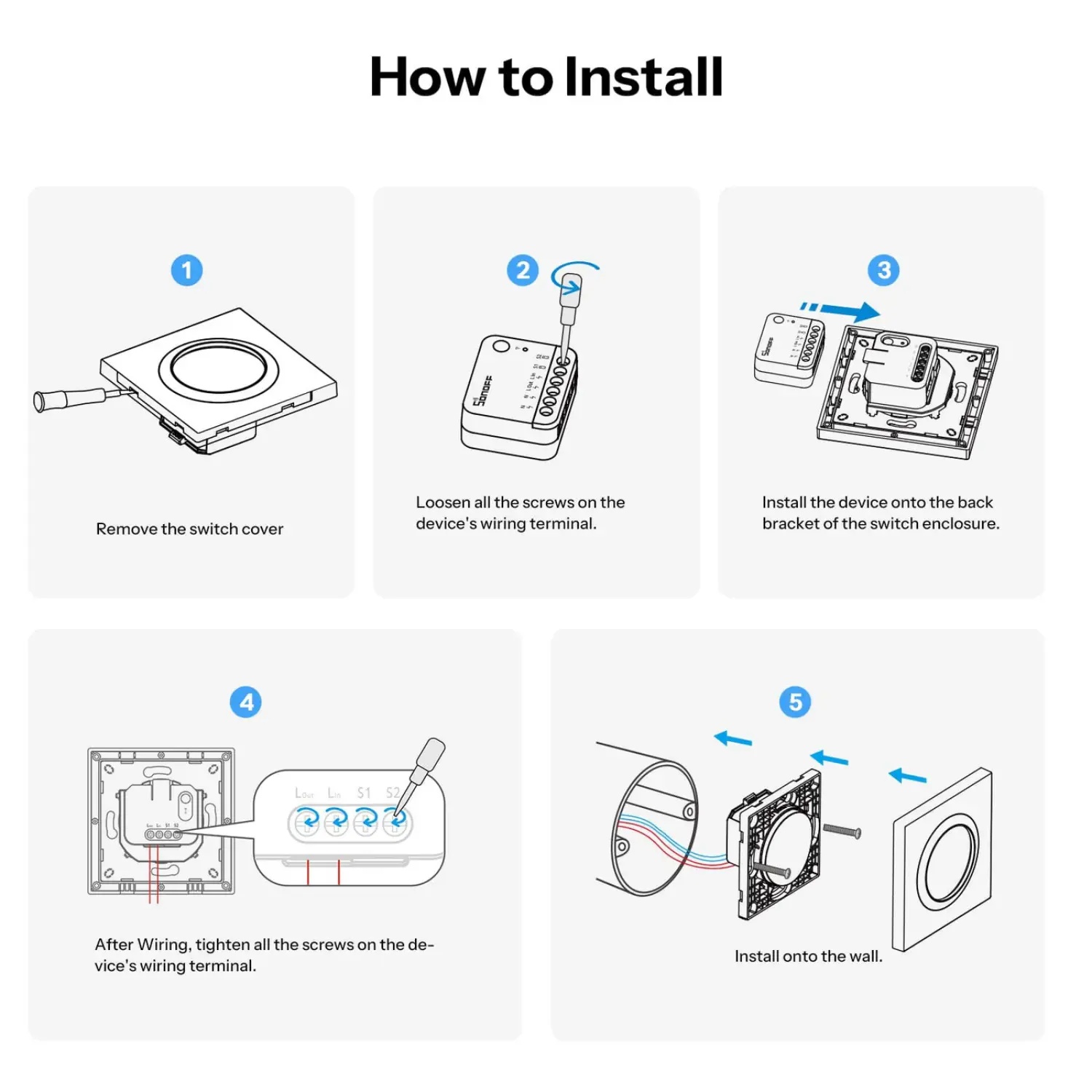 Sonoff afbryder E1GS er en smart løsning til styring af dine lyskilder. Kompatibel med ZBMINIL2, MINIR4M og MINIR4.