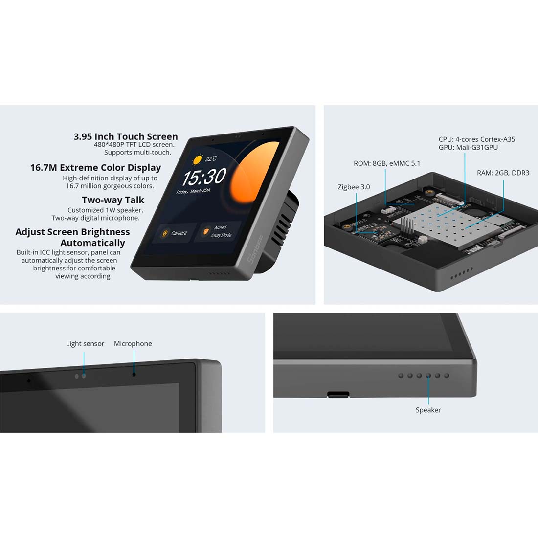 Sonoff NS Panel er designet til at understøtte alle SONOFF Zigbee enheder. Panelet kan også styre tredjeparts Zigbee 3.0 enheder samt bruges som eWeLink fjernbetjeningsgateway til at tilføje R5 eller S-mate. Med denne kombination kan du nemt styre forskellige enheder fra forskellige steder i dit hjem.