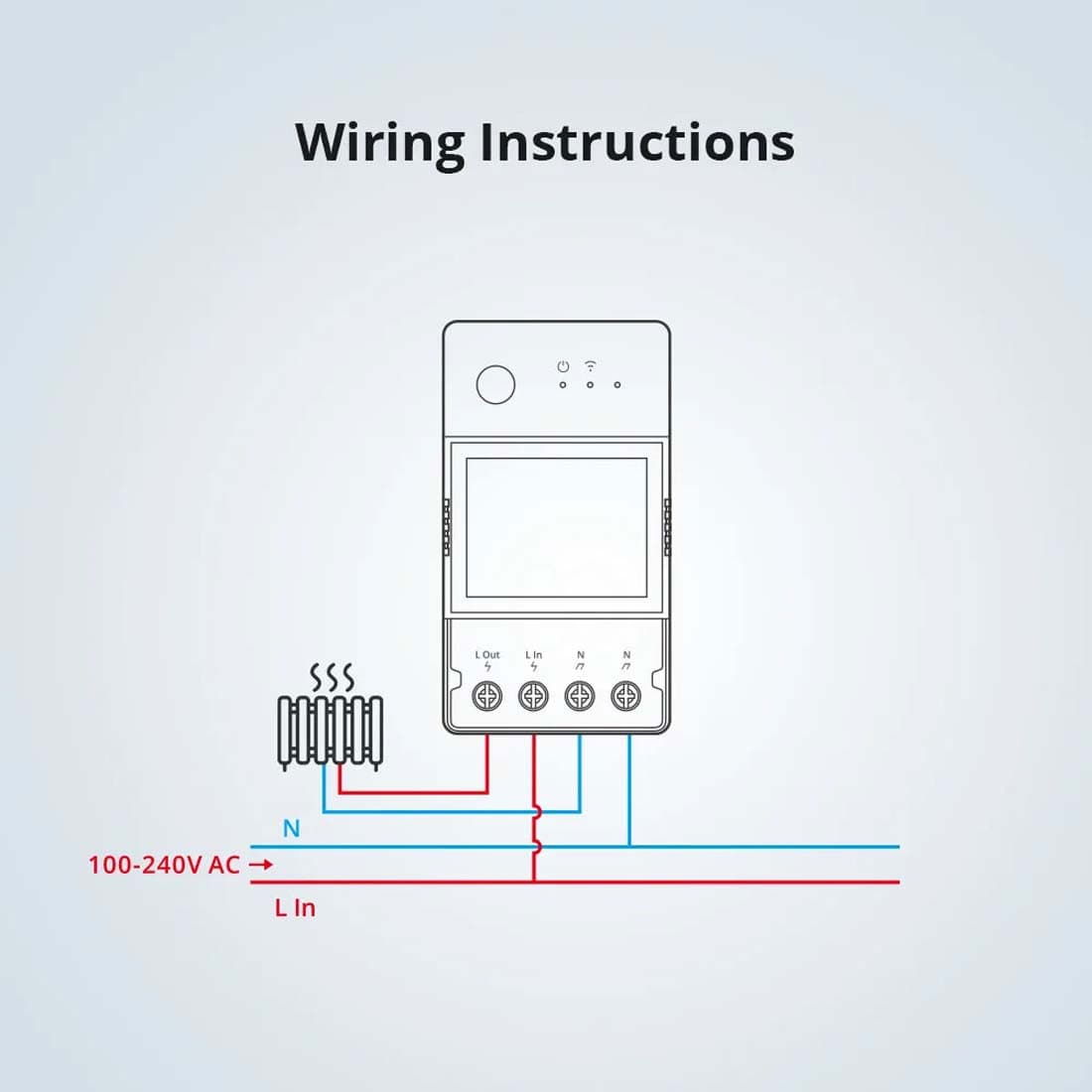 Med Sonoff POW Elite WiFi-switchen kan du nemt aflæse dine elektroniske apparaters strømforbrug i realtid. Programmer switchen til at tænde/slukke lys eller andre apparater automatisk via en app. Et eksempel kunne være at indstille varmepumpen til at slukke efter en time, hvilket kan styres direkte fra appen.