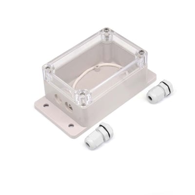 Sonoff samledåse med IP66 certificering til udendørs brug. Støv- og spuletæt med 2x M12 kabelindgange.