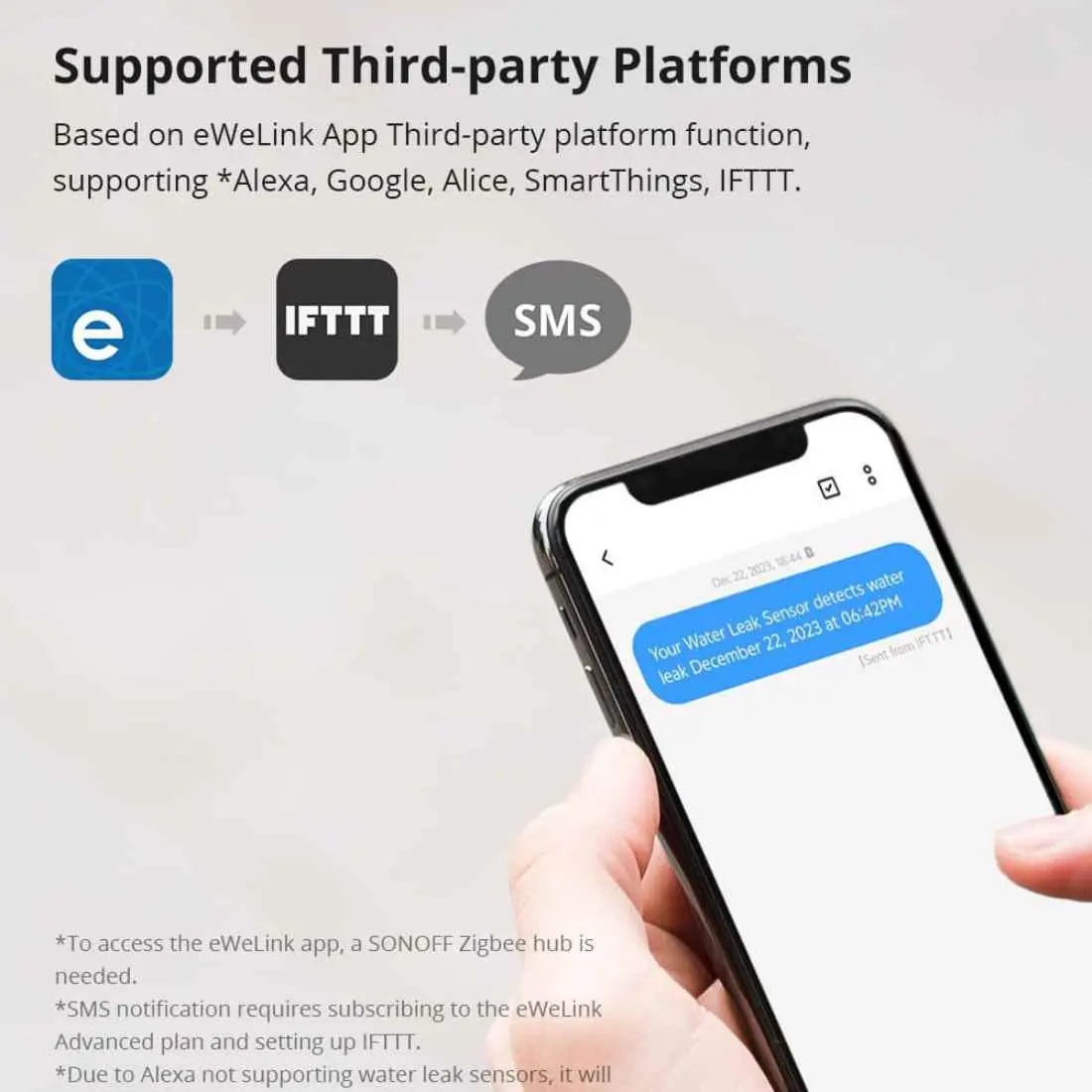 Når der opdages en vandlækage, sender SNZB-05P sensoren straks en push-notifikation til din smartphone, så du hurtigt kan reagere. Zigbee-lokalscenarier kan også aktivere en lydalarm via gatewayen, selv i tilfælde af WiFi-fejl. Denne funktion sikrer, at du altid er informeret, uanset om du er hjemme eller ej.