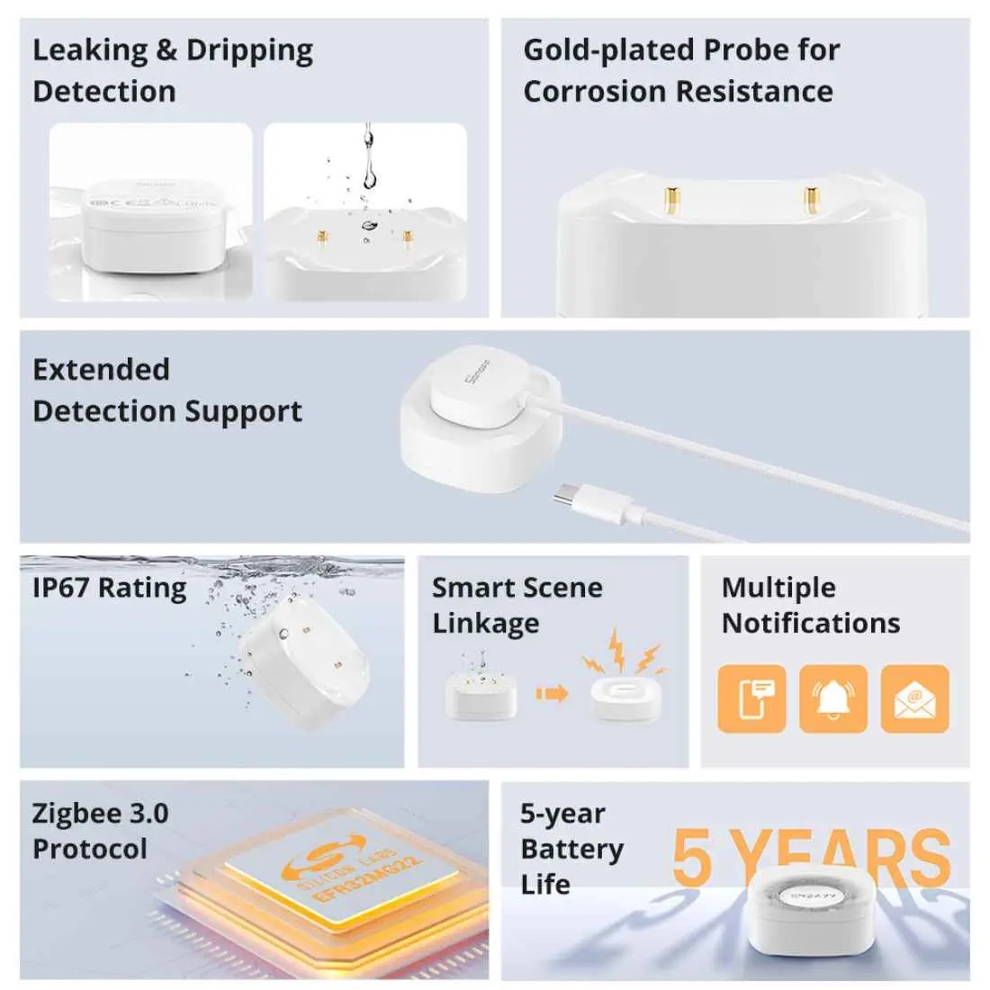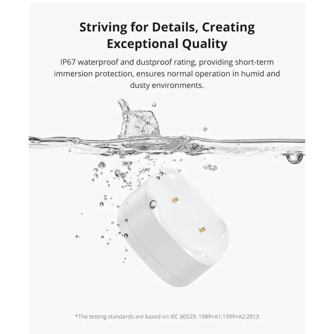 Sonoff Zigbee Water Leak Sensor er designet til effektivt at opdage lækager og dryp i dit hjem. Med dens unikke hævede probe kan sensoren registrere væskestand ned til 0,5 mm, hvilket sikrer hurtig opdagelse af selv de mindste lækager. Denne funktion gør den ideel til placering på metaloverflader, uden risiko for falske alarmer, hvilket gør den pålidelig i ethvert miljø.