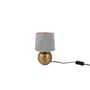 Sophia bordlampe fra TRIO Lighting i gylden keramik med grå stofskærm og afbryder på sort ledning.