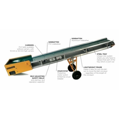 Uanset om opgaven er at fjerne udgravet jord eller transportere byggematerialer, er SoRoTo transportbåndet et effektivt og holdbart valg, der bidrager til en mere strømlinet arbejdsgang.