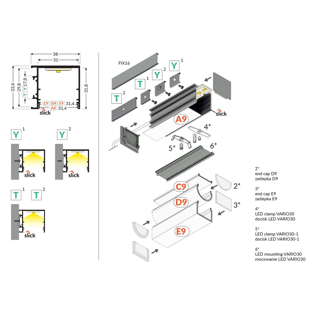 Denne sorte, anodiserede LED skinne er ideel til påbygning og kommer med en 2 meter VARIO30-03 ACDE-9/TY aluprofil. Den er fremstillet af aluminium, hvilket sikrer en robust og holdbar konstruktion.