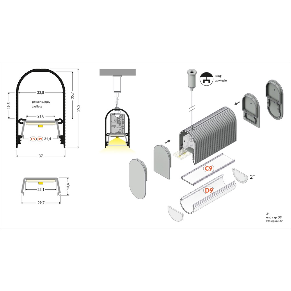 Denne sorte, anodiserede NAMI23 CD-9 aluprofil fra Topmet er designet med påbygning og LED skinne til montering. Den er ideel til diverse belysningsløsninger.